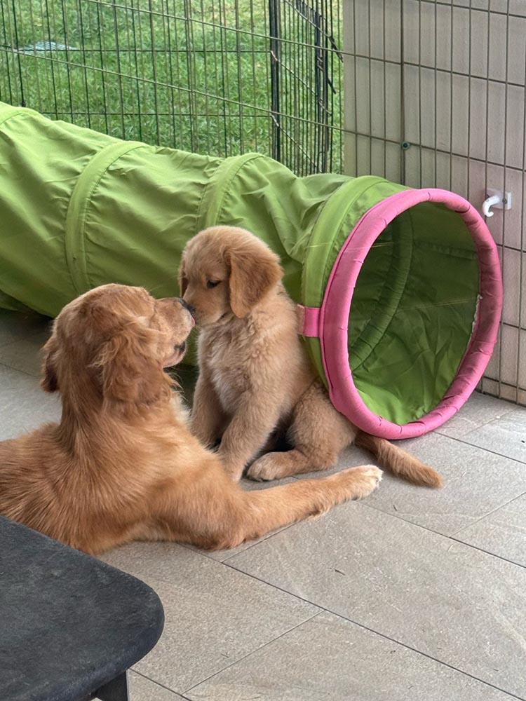 Freud joined our family recently and we have high hopes for his show career. Both his parents are AKC Grand Champions and….and we are confident that he will live up to their standards. We selected Freud to be part of our family because his father “Hooch” (Champion, Outstanding Sire & a Show Dog Hall of Fame) is also Capitan’s grandfather and we would like to preserve this incredible bloodline. Hooch is the father of numerous Champions). We welcome this loving puppy “Freud” to the Caribbean Golden Retriever family.